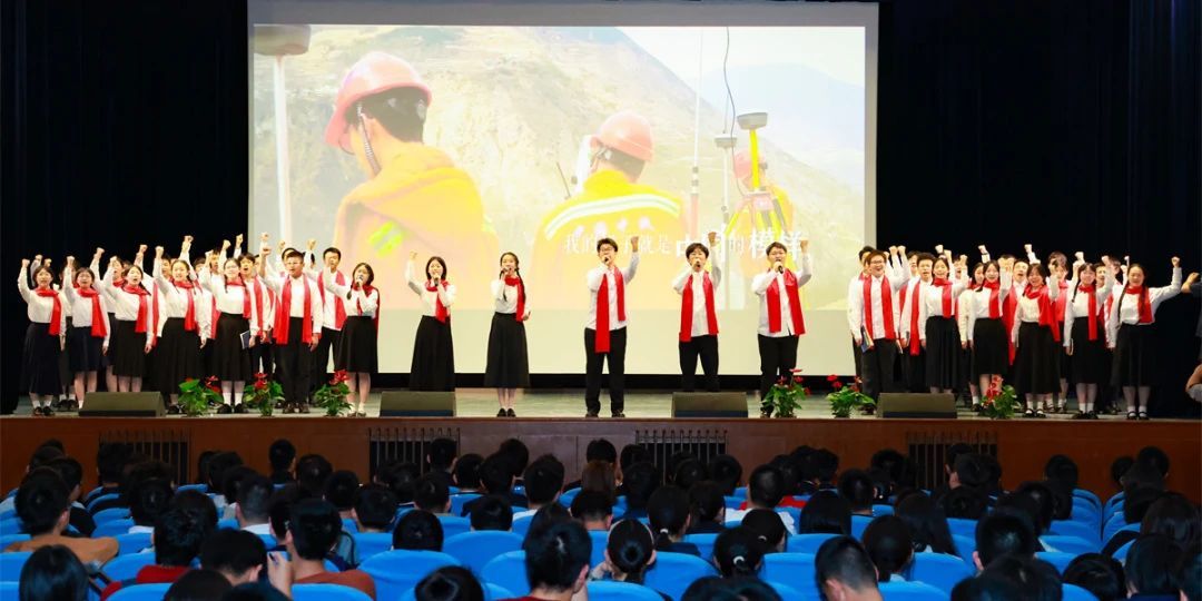 大会最后,高一(3)班全体同学以红歌展示《有我》,将现场气氛推向高潮。