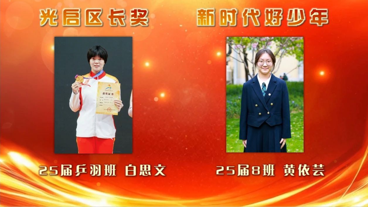 大会首先宣读了“光启区长奖”及“新时代好少年”个人、团队名单。同时公布在自尊、自律、自觉、自强、自理“五自”方面表现突出的“五自标兵”、“五自积极分子”名单,成为全校学生的榜样。